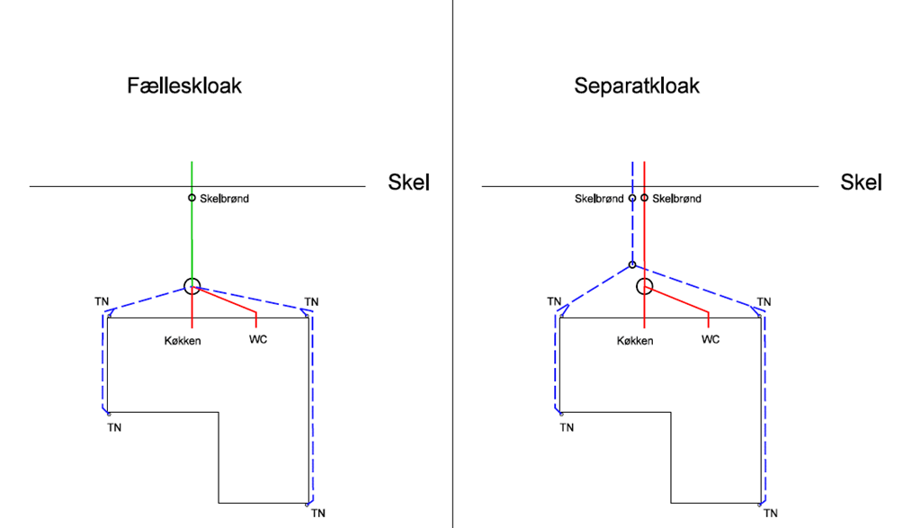 Figur 3: Viser hvorledes kloak på egen grund skal ændres/fornys.